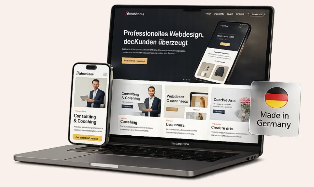 Kein Baukasten. Keine Abo-Falle. Kein technisches Chaos. Stattdessen ein moderner, klarer und professioneller Webauftritt, der Vertrauen schafft und Ihr Unternehmen sichtbar stärker positioniert.
